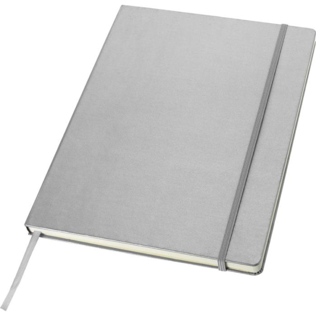 Discover our exclusive design classic hardcover notebook, perfect for branded promotional merchandise. This A4-sized notebook features an elastic closure and 80 sheets of 80gsm lined paper, ideal for jotting down notes and ideas.