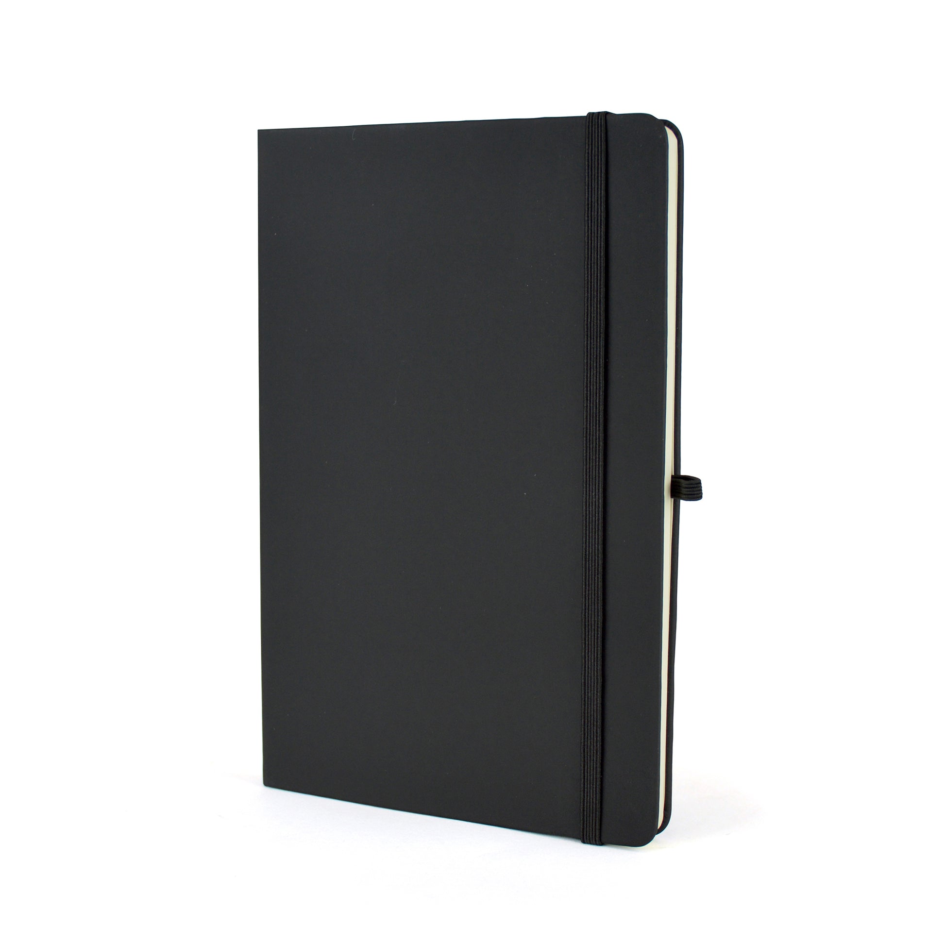 A5 mole notebook with antibacterial coating for extra safety! Includes 80 lined pages, pen loop, bookmark, elastic closure and rear pocket.