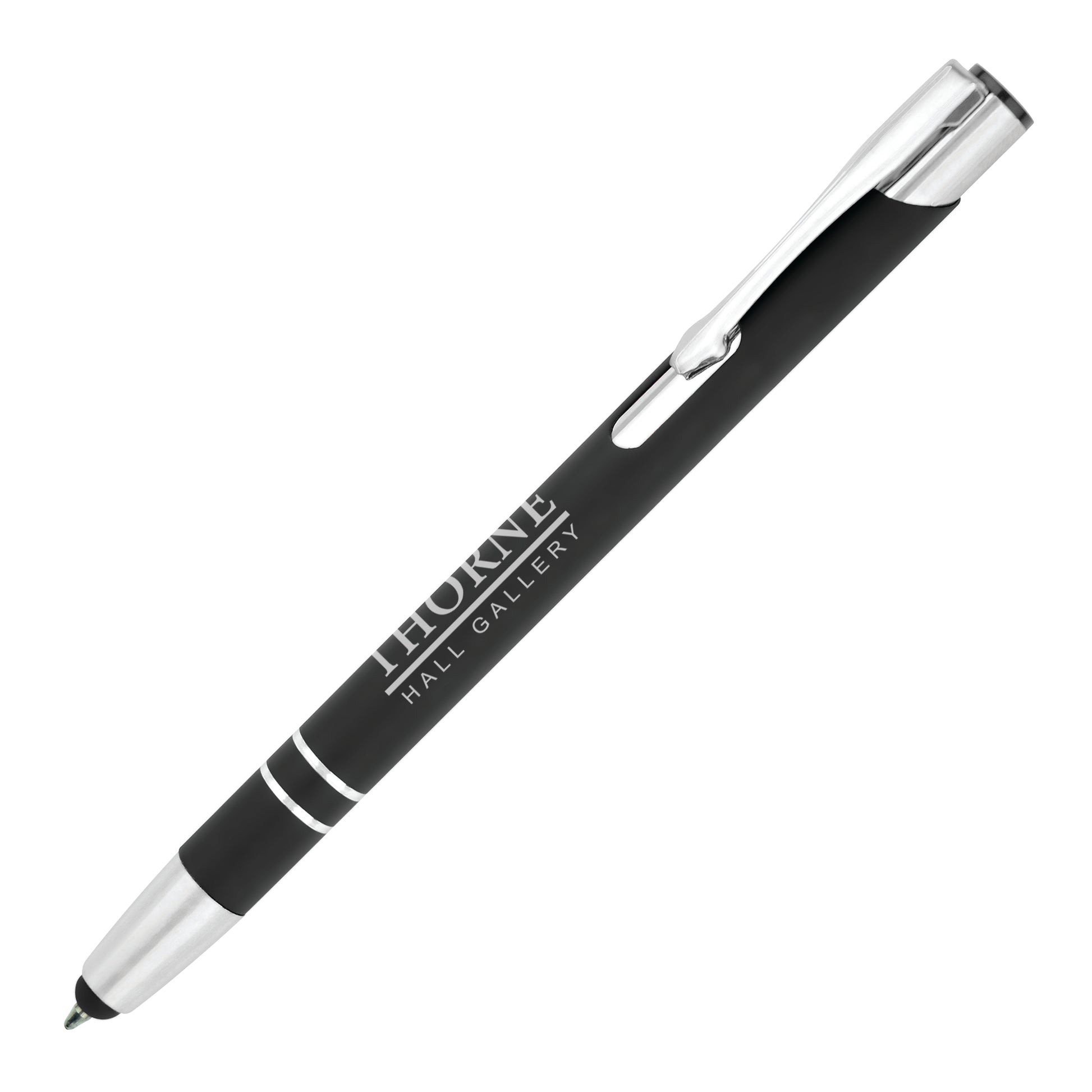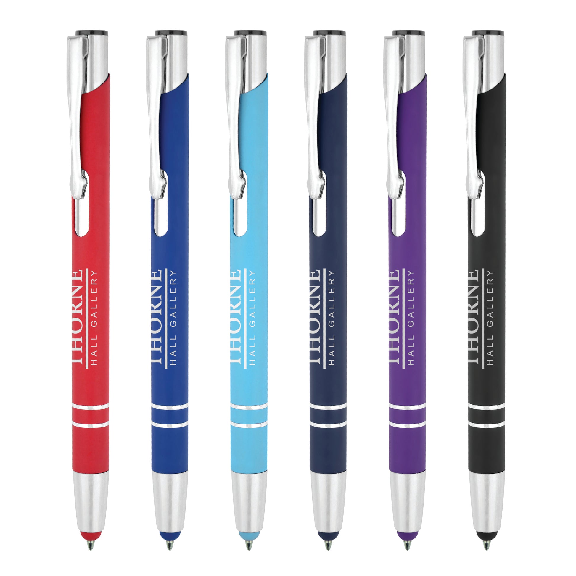 A Soft-feel stylus version of one of our most popular metal pens in a range of vibrant colours. Marking is by Engraving or digital print.