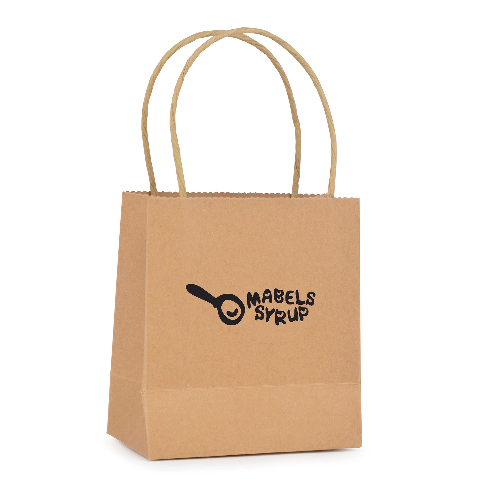 230gsm recyclable, compact, natural coloured small paper bag with paper twist handle