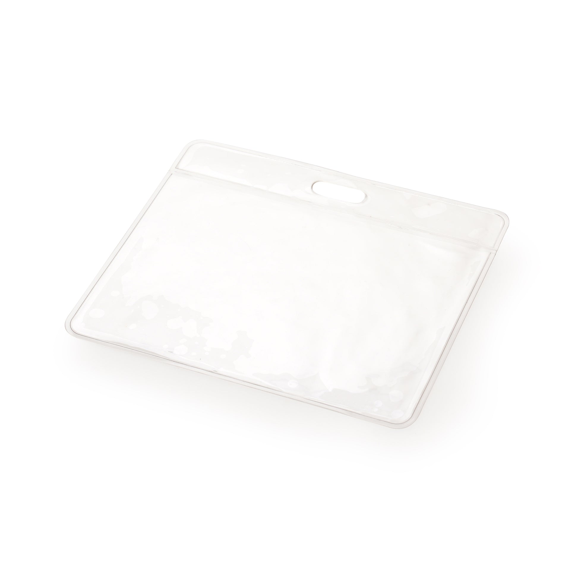 Plain stock clear PVC pass holder ideal for conferences, travel companies and offices. Holds a card up to 94 x 130mm. Lanyard not included.