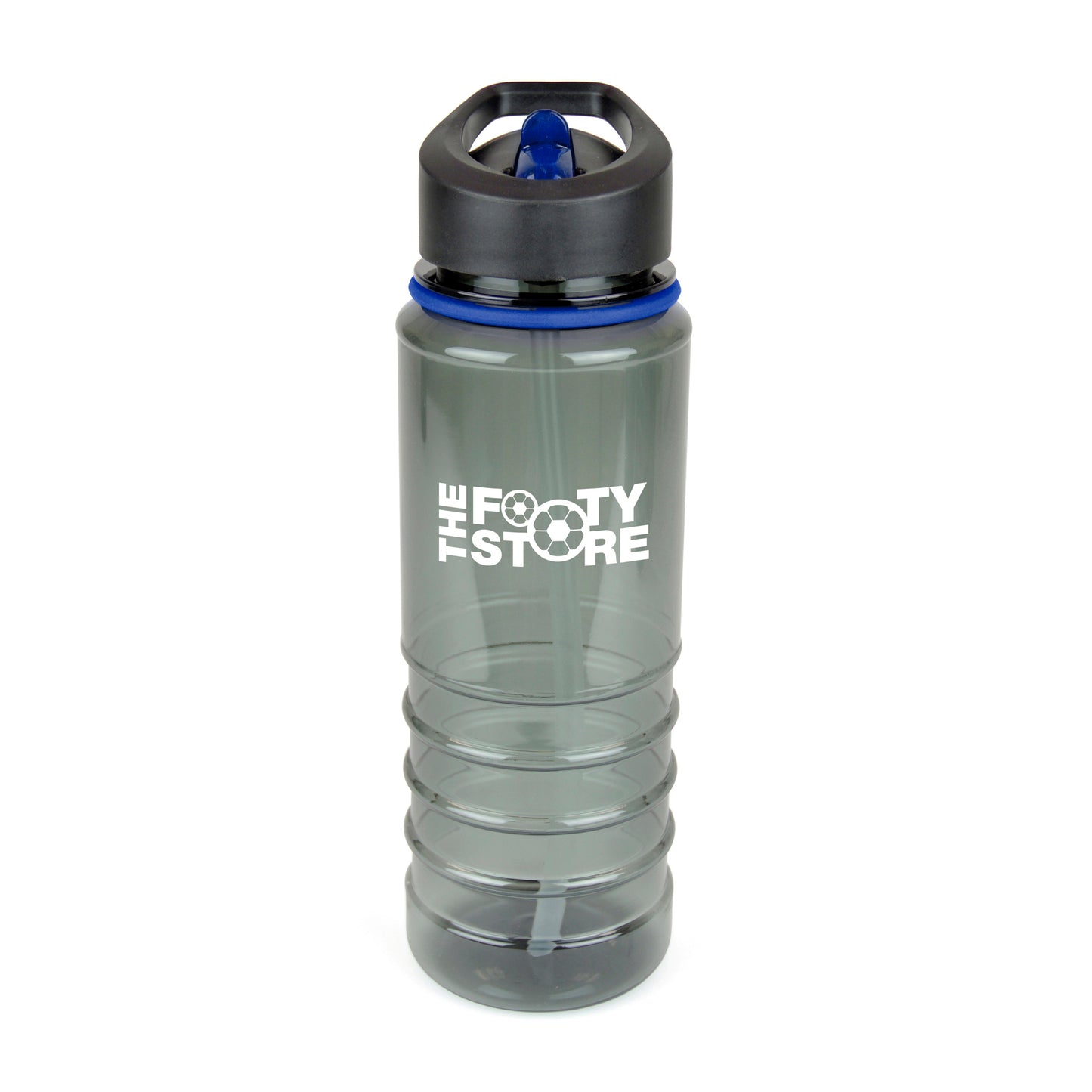 750ml single walled, transparent black, PET plastic drinks bottle with black PP plastic lid, PE plastic clear straw, coloured band and coloured AS plastic fold down sip mouth piece. BPA & PVC free. Available in 9 colours. This product replaces MG0506 & is now made from PET material.