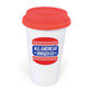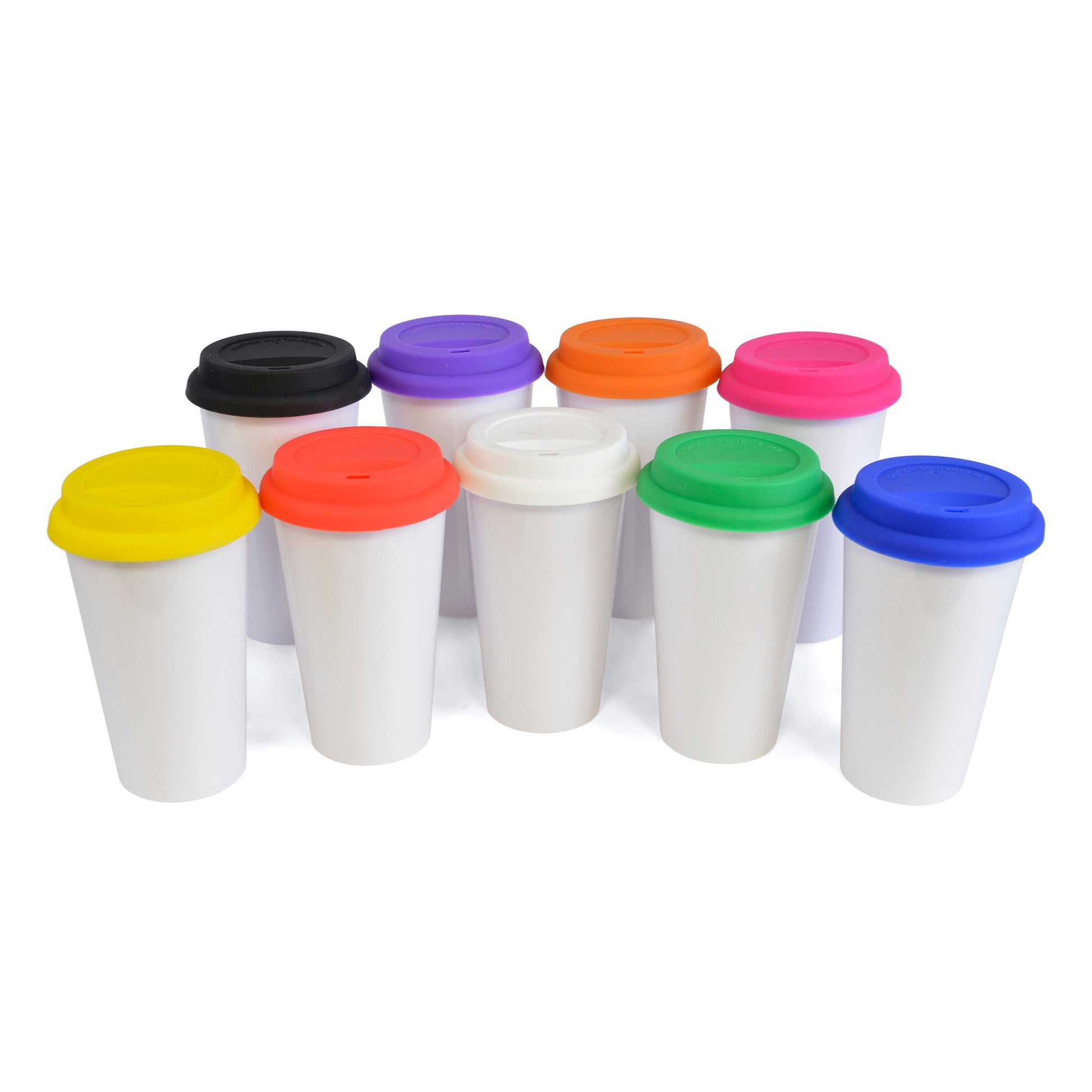 375ml double walled, AS plastic white plastic take out style coffee mug with silicon lid. BPA & PVC free.