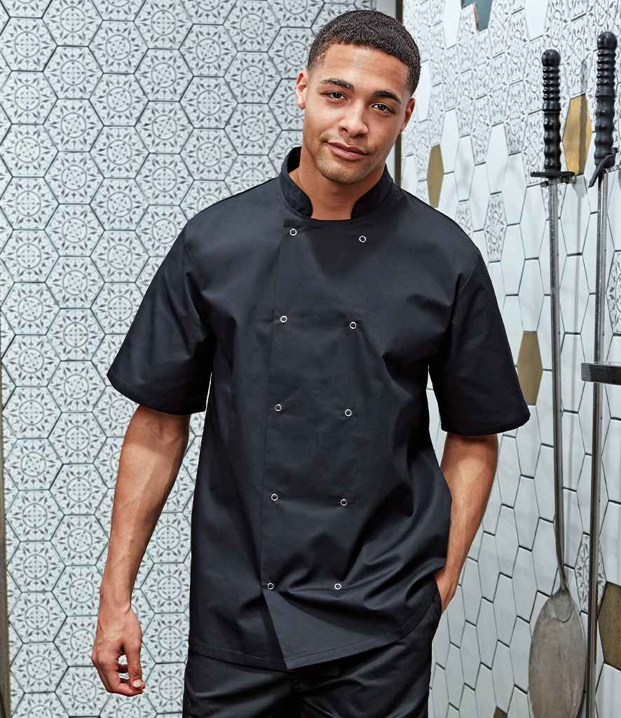 Premier Unisex Short Sleeve Stud Front Chef's Jacket