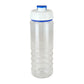 750ml single walled, translucent, Tritan plastic drinks bottle. Features include a white PP lid with a coloured PE flip top and matching coloured silicon trim. BPA & PVC free