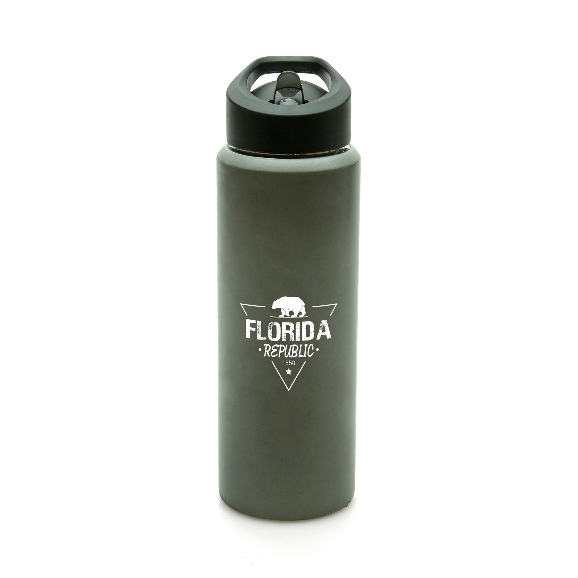 750ml single walled, stainless steel bottle which changes colour when you add cold liquids. Secured with a screw on recycled PP plastic lid with recycled PS plastic sipper, recycled LDPE plastic straw and silicone seal. BPA and PVC free.