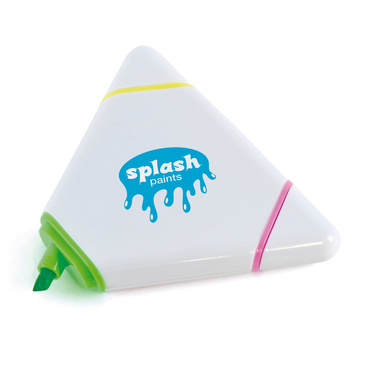 Basic triangle highlighter with 3 coloured highlighters. Yellow, Green and Pink.